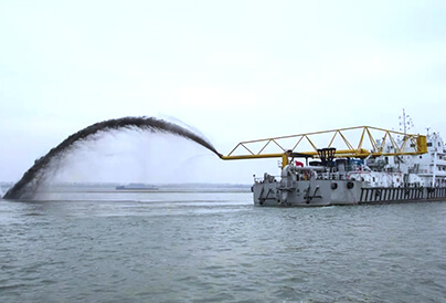 利用挖泥船將航道內(nèi)的泥土挖出后,使用管線(xiàn)將挖出的泥土排放到需要進(jìn)行回填的港口或碼頭上,通過(guò)泥土回填的方式來(lái)使港口和碼頭填筑到需要建設(shè)的高度,這便是吹填工程。